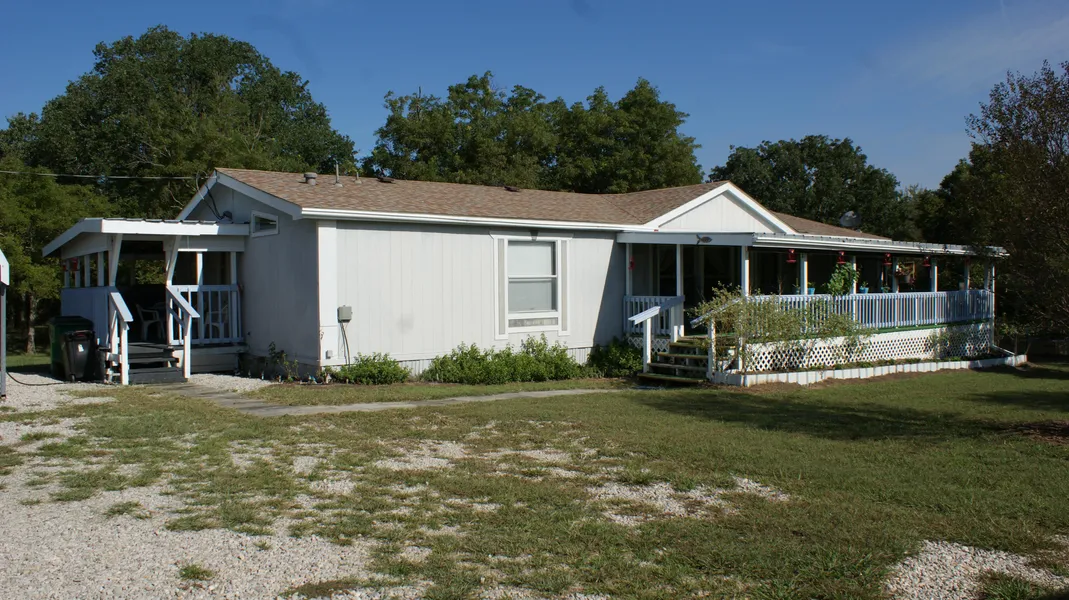 You'll love the views at this secluded property! 4.05 acres with hundreds of beautiful native oak and pecan trees. Nice 4 bedroom, 2 bath home has wonderful split floor plan with updates including laminate wood flooring throughout. Large kitchen features tons of cabinets and storage with breakfast area and dining space. There ae two great outbuildings for workshop and storage plus a newer 30x70x16 covered parking with concrete floor and metal cover, perfect for motor home, vehicles, tractor, etc... Pride of ownership is evident at this park-like setting with a raised bed garden area, in-ground fire pit and more. There is ample wildlife as well! Covered porch across front is perfect for outdoor living!