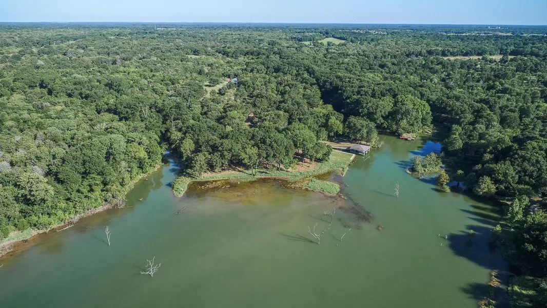 One of a kind waterfront acreage! This property has 21 acres, approx 600 feet of shoreline with some of the best fishing on the lake. Steel retaining wall, boathouse with 2 lifts and open water views. Heavily wooded with deer stands, creek and tons of wildlife. Electric & water run to ideal building site for larger home overlooking the lake. Has a huge metal building with a 41x27 shop with two overhead doors and is fully heated and cooled. And a 29x23 living quarters with full kitchen, bath, bedroom, living room and screened porch. At front of property is a well maintained 3 bd, 2 bath DW. There are three large metal storage containers; creek with heavy duty metal bridge and plenty of privacy.