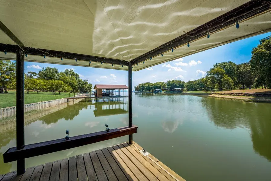 Ready To Own A Piece Of Lakeside Paradise? Look no further than this stunner on Richland Chambers Lake! This waterfront property features over an acre of lush lawn and soaring shade trees leading down to your private boat dock that's complete with electric pontoon cover over the boat lift and double jetski lifts. Upon entering this charming home, you'll be greeted by the large antler chandelier, gas fireplace and hand scraped wood floors leading you to the wall of windows overlooking the lake. The 5 bedrooms & 4 baths means there's room for everyone including the spacious primary suite with lake views, jetted tub, separate sinks & vanities, the mother-in law suite with lake views, and two upstairs rooms could be bedrooms, a bunk room or media room perfect for kids. Outside the paths lead you out of the fenced yard area to your workshop, in-ground fire pit for the cooler evenings and on down to the boat dock. This lakeside dream is move-in ready so you can get to enjoying the lake life!