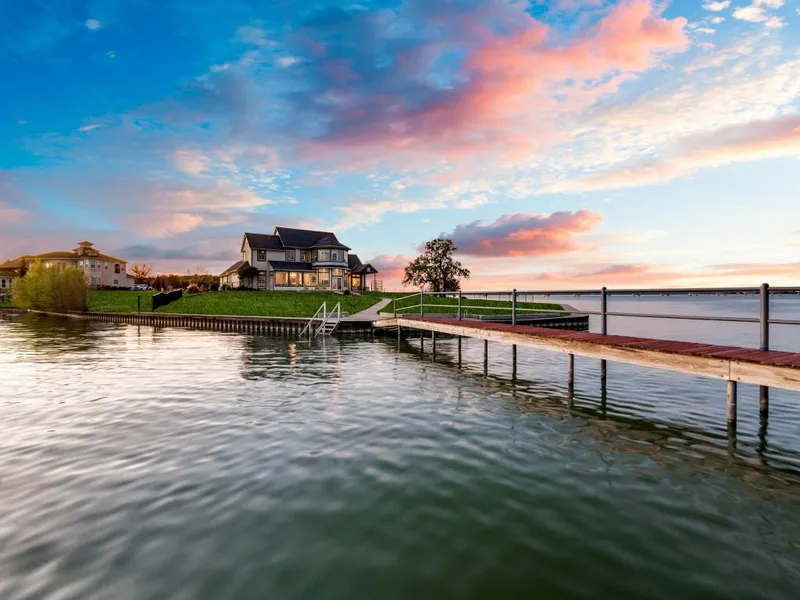The lake is calling & this home sitting on a spectacular peninsula is ready to answer! This 4B,3.5B,3C lake home gives open water views from 2 levels inside & out. You are greeted with a stunning vista from the open concept living area & each bedroom overlooks the lake as well. The star of the show is the upper & lower level enclosed sunrooms featuring wall to wall year round views. Get up and close and personal with the views from the 251 feet of shoreline on the deepest part of the lake! A additional den ensures room for everyone to have their own space & the whole house generator provides peace of mind. Your private boathouse is complete with storage, sink, boat lift and double jet ski lift and is positioned for direct access to the lake for hours of fun. The unique position of this property ensures the best of both worlds...open water access as well as a protected cove area. Come exp...