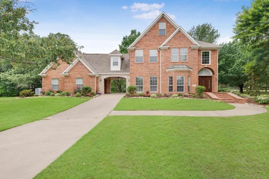 This traditional style home sits on a sprawling 4.4 acre waterfront tract on a quiet canal in Hidden Oaks offering up a serene lake oasis. The 5 bed, 3.5 bath home features 2 living spaces, a formal dining that would make a great office, plus the 5th bedroom could be a great hobby or craft room. This home features 2 primary suites as well! The private backyard features an exquisite garden like setting with meandering path and brick patio, great for morning coffee and bird viewing! The 2 car rear entry garage is accessed through the porte cochere from the long drive set back off the road & provides space for stashing all the lake toys you'll need for memory making days on the water. There's plenty to unpack here, with a gorgeous property full of mature shade trees that lead down to over 250 ft of shoreline tucked safely behind a steel retaining wall where you'll find the 2 level boathouse...