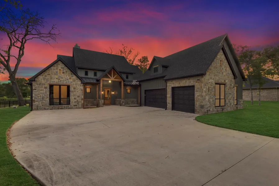 Welcome to this recently built water front home in The Shores...where you'll discover a perfect balance of lakeside relaxation & modern farmhouse details! The open concept living space overlooks quiet canal views & transitions seamlessly over to the well designed kitchen with a large island,plenty of custom cabinetry & spacious walk in pantry. Gorgeous details are found all over this home from the luxury plank vinyl flooring, granite surfaces, warm rustic wood accents & massive stone fireplace to the custom lighting & modern black frame windows. The private primary suite overlooks the water & the ensuite bath features a soaking tub, dual vanities, double shower & direct access to the laundry room. The outdoor spaces are the real star of the show here with an expansive covered back patio with insect misting system & stone fire pit area for making smore's, all enclosed in the fenced back yard. The new boat dock includes a boat lift & double jet lifts for quick access to the lake!