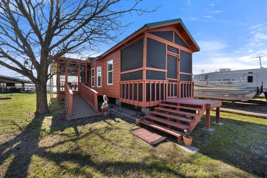 Escape to this charming 2-bedroom, 1-bathroom tiny home located on a beautiful waterfront lot in the peaceful Pelican Isle Subdivision! Just in time for the summer, this cozy home comes mostly furnished and is ready for you to enjoy lake life at its finest. Relax and enjoy your surroundings from the covered front and back porches, both featuring TREX decking for durability and easy maintenance. These porches are perfect for sipping coffee in the morning or unwinding in the evening. Step out to your very own dock, ideal for boating, fishing, or simply soaking in the serene lake views of Richland Chambers Lake, third largest lake in Texas. Pelican Isle is a gated community for added security and privacy with terrific amenities that include a convenient on-site laundry facility for residents, a swimming pool & playground, a boat ramp, a centralized mailbox area for added convenience. Whether you're looking for a weekend getaway or a peaceful full-time home, this waterfront gem offers a perfect blend of comfort and relaxation. Grab they family and friends, hook up the boat or jet ski for a day out on the lake, then come back and enjoy a nice dinner outside on the porch watching the sun set. Don't miss out on this rare opportunity to own your own piece of lakeside paradise!