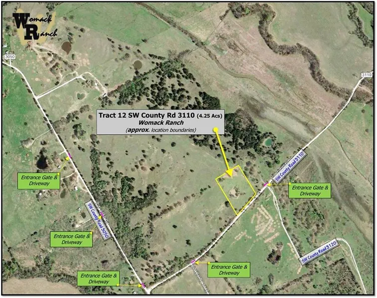 A New Place to Call Home! Tract 12 is a 4.25 acre tract in the brand new subdivision of Womack Ranch. Lots of pasture area, stock tank, trees and open building areas. Plenty of deer & other wildlife plus hunting is allowed. Womack Ranch is a brand new subdivision south of Corsicana. Deed restricted to site built homes with a minimum of 1,100 sq ft. Barndominiums welcome! Horses & cattle welcome on at least two acres of land. Utilities at road & owner will pay to run electric above ground along lot line up to 150' & another 65' underground into tract~with normal application fees.