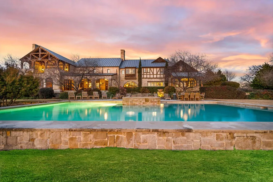 This luxurious lakeshore retreat is located on the banks or Richland Chambers Reservoir with over 1000 feet of shoreline. An easy hour drive from Dallas, you'll find the perfect waterside escape. Featuring a 9540 SF Main House with a two-story great room with a massive stone fireplace. The main house has 4 bedroom suites with a gym, game room, screen porch, study, and much more! A 3298 SF Guest House has 4 bedrooms, an open kitchen, dining & living area, relaxing front porch and attached 4 car garage. There is also a 2165 SF stable building with four stalls, wash, tack room, and attached 671 square foot apartment. Pool + Tennis! Property conveys with 18 additional lots. Please see attached docs for more info.