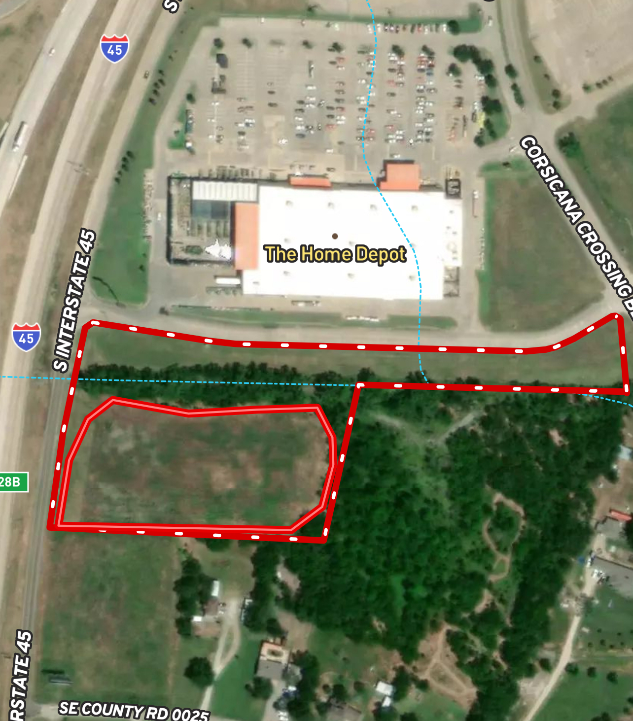 Great Commercial Pad site in the growing Corsicana area!! This 7.338 Acre site Is apart of Corsicana Crossings, but sits just outside the development directly next to Home Depot, and surrounded by multiple other big retailers and restaurants. Great Location and Visibility Right off of IH 45 Frontage Road. Multiple Large residential developments within a 5 minute drive have recently been completed or are undergoing construction. Bring your business, ideas, and investors to Corsicana Crossings! Great road frontage and easy access to IH 45 and Highway 287. IH 45 has an average of 42k vehicles per day. Lot sits just 2 miles north of the brand new Highway 31 Bypass. Only 50 Minutes south of Dallas! Seller recently completed work with Fema and engineers to pull the pad site out of the flood plain making this property ready to go!