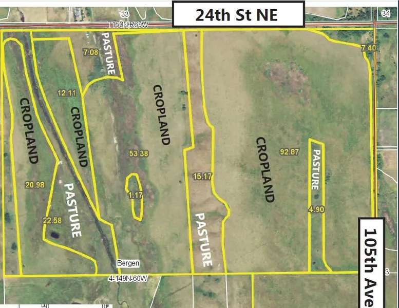 Research Parcel InformationFrom intersection of State Hwy 1 and Hwy 15 East of Pekin go 2 miles South on Hwy 1 to 24th St NE. Then go west 1 mile to 105 th Ave NE. You are now at the NE corner of the property
