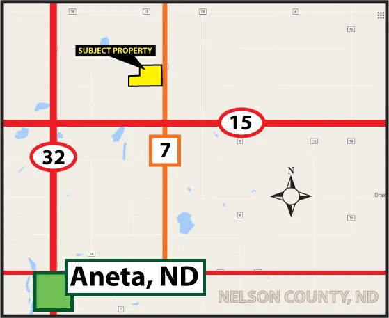 Research Parcel InformationDriving Directions: From the intersection of ND HWY #15 and ND HWY #32 (north of Aneta): Drive east on HWY #15 for 3 miles, then proceed north 2 miles on Co. Rd. #7 (124th Ave NE). This will place you at the southeast corner of the property.