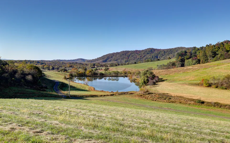 Gorgeous 72 acre parcel in central Nelson County very close to Lovingston. Multiple elevated building sites overlook a beautiful stocked lake, with mountain views beyond. The lake sits at the bottom of a small valley, and the land runs towards the ridgetops on both sides. Carefully managed and maintained property is worthy of construction of an architecturally significant main dwelling. A charming tenant cottage, the core of which is an old log cabin, is already onsite, providing guest accommodations or rental income. Part of a 6 parcel rural neighborhood with common sense Covenants that protect everyone's investment. Nearby neighbors include two different working vineyards and a Nature Preserve. Private and protected, yet not isolated.