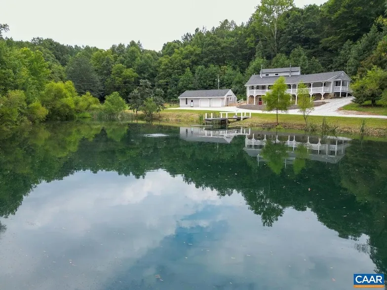 Rare opportunity to own a home with apartment overlooking a pond AND garage, heated workshop, barn/equipment building, garden area, stream, riding/ATV trails, privacy and views of water, mountains, and woods. Live on your terms with NO homeowners assoc or restrictions. Ideal to live off the land and raise a few chickens or other farm animals, garden, and/or hunt. Main residence has 2,247 fin sq ft (3Br/3Ba) and an attached apartment with 771 fin sq ft (1Br/1Ba) that is handicap accessible with entry ramp, roll-in shower, wide doorways. Apartment is perfect for aging in-laws, young adult wanting privacy, OR investment rental (separate entry/parking/laundry). Basement of main house has overflow for family room, rec space, and a partial canning kitchen. Lots of unfinished space with cellar for canned goods/garden produce and large open space below apartment for hobbies, recreation or storage. Extras: balcony and a patio (both 2000+ sq ft), hardwood floors, cathedral ceilings, wood stoves, fiber optic internet, roof (2023), 2 AC units + furnace (20k - 2024), septic pumped 2024, well 18 GPM. Near Lovingston Winery and minutes to Rt 29 for easy commute to Charlottesville or Lynchburg, AND recreation at Appalachian Trail and Wintergreen.,Oak Cabinets,Solid Surface Counter,Fireplace in Great Room,Fireplace in Kitchen