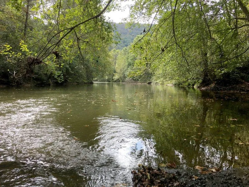 If crossing river is not possible, go back 2mi to LEFT on Laurel Rd (639). 1mi to LEFT on Sonshine Ln. 1.5mi to LEFT on Johnson Hollow Rd. Continue to river and entrance on right.