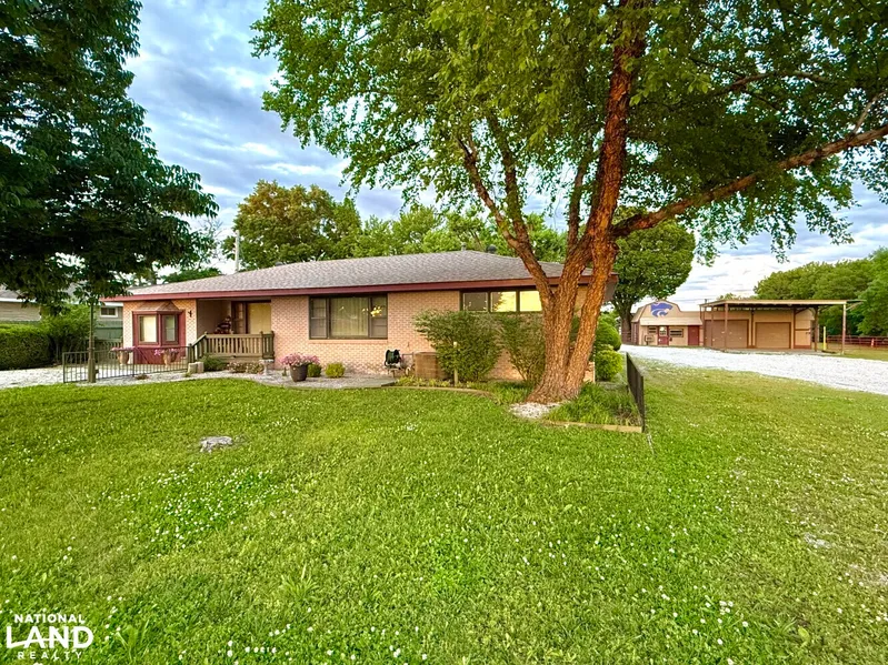 In town convenience with country attributes. Situated just outside the city limits on a 2.75-acre lot, this spacious 4-bedroom, 3-bath ranch home offers room to live, work, and grow. Step inside to find generously sized living areas, including 2 family rooms, formal dining, and a master suite with a private bath. The original two bedrooms in this home are just down the hall from the dining room, with a full bathroom next door. The 4th bedroom/office borders the kitchen and is connected to the 3/4 bath with access to the mudroom. The large eat-in kitchen features ample cabinets and plenty of space for the family to gather. Just off the kitchen is the aforementioned mudroom, conveniently located by an outside entrance. This property is much more than just a comfortable home - it also includes a variety of outbuildings that open up endless possibilities. The front shop includes an office and has plenty of square footage to operate as a mechanic shop, workshop, or custom business. A paint booth in the north shop adds a unique utility, while the rest of the outbuildings are open to your imagination. The back of the property has an uninterrupted 1 acre of grass that creates a great spot for a small hobby farm or large garden. Enjoy country vibes and city amenities, without city restrictions.