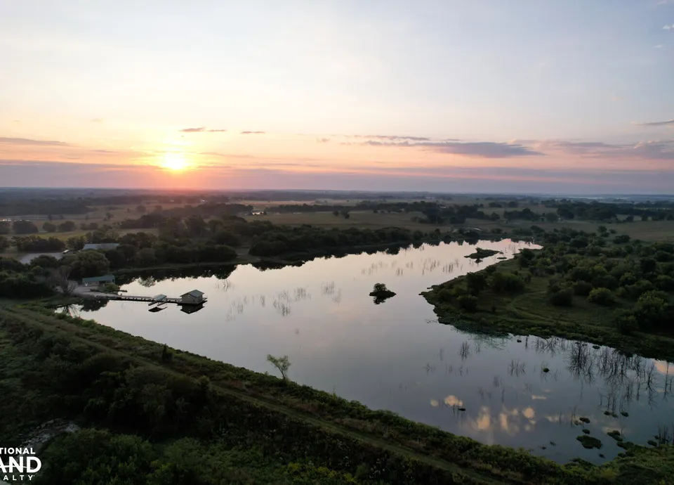 Beyond the buildings lie nearly 1,800 acres of diverse wildlife habitat that has consistently produced 200-inch whitetails and phenomenal turkey hunting, creating decades of unforgettable memories for family, friends, and clients. Duck hunting along the Neosho River continues to gain recognition each year, and the property is just 13 miles from the renowned Neosho Wildlife Area, which attracts large concentrations of mallards each winter. Existing wetlands provide excellent waterfowl habitat with ample opportunity for expansion.