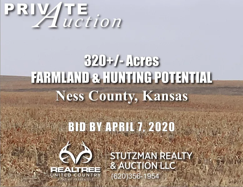 This 320 +/- acre tract of farmland with hunting potential is on the High Plains of West Central Kansas, located within the southwest corner of Ness County, Kansas.
