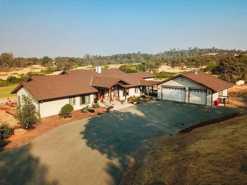 Privacy and Views. Single story Contemporary home. Floor to ceiling windows overlooking irrigated pastures. Spacious rooms, Gourmet kitchen with large center island. Alder Cabinets. Engineered hardwood floors, sky lights, 2x6 construction. R49 and R21 insulation with three solar attic fans and two whole house fans. Wired for sound inside and out. Two electric panels with 400 amp service. Generator back-up. 3.2 KW owned solar system. Radiant Barrier Enhanced 30 year composition roof. NID canal on property. Irrigated pastures. All usable land perfect for livestock, vineyards, orchards or ? Don't miss this special property.