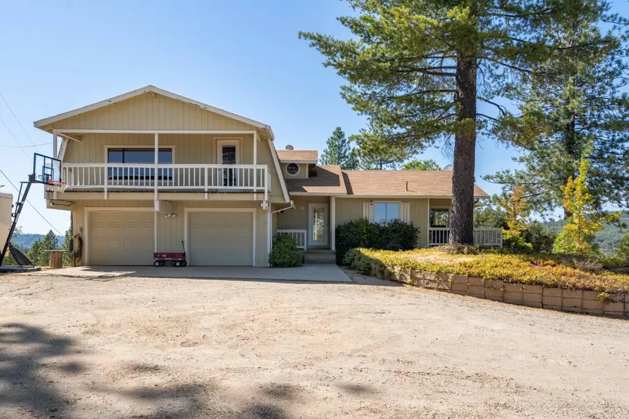 This custom view home sits atop a gentle ridge overlooking the Sierra Mountain Range with 300 degree views. Home is 1,710 square feet and has 2 bedrooms, 2 baths, custom hand scraped sugar pine flooring, central HVAC, a new propane freestanding fireplace and a large attached 2 car garage. Property has been completely cleared, features sculpted oaks, a lavender farm, mature fruit trees, several Ag supported buildings and permitted 82x30 Forever Flowering Northern Latitudes Greenhouse. A fully compliant farm! A recently installed 8 deer fence and custom gates surrounding the entire property offering maximum security and privacy. Grounds are immaculate and feel park like.