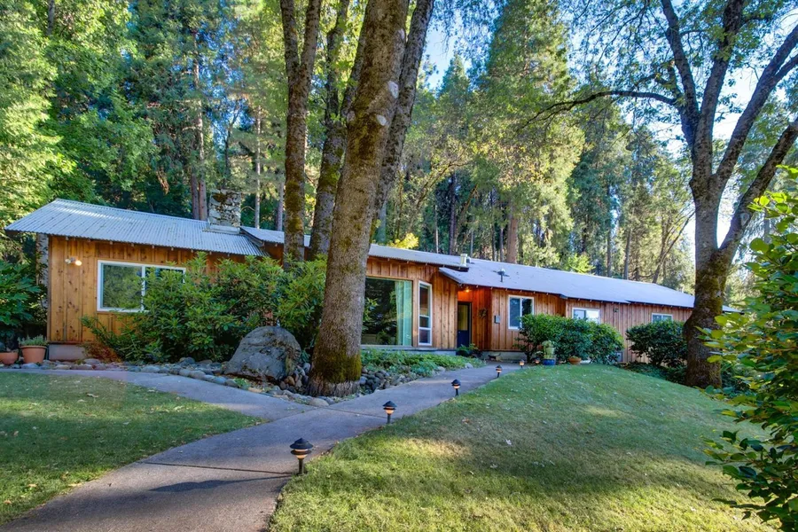 Mid Century Modern beauty on nearly half an acre just off Ridge Road in Nevada City. This home has been updated over the years with metal roof, cork flooring, solar tubes and skylights as well as kitchen and baths. But still has the 60's charm. Home features 4 bedrooms, 3 baths, 2 bay carport, screened porch and lovely landscaped yard shaded by oaks and evergreens.