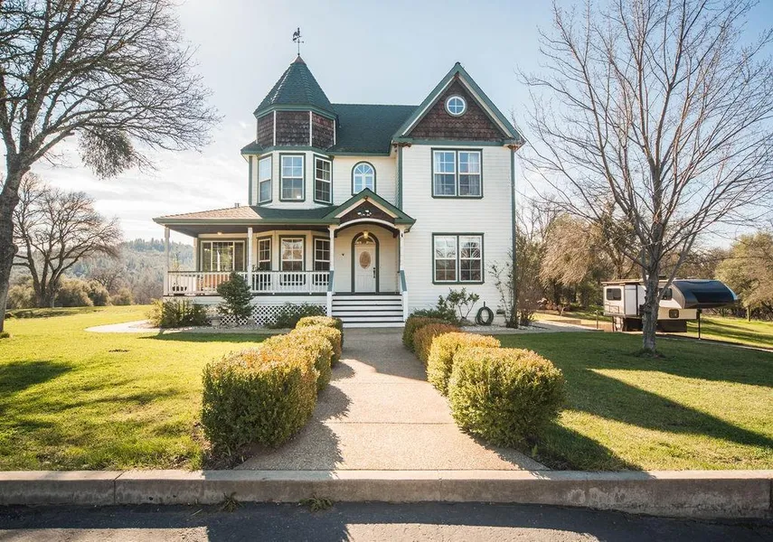 Your private mini ranch awaits. This beautiful Victorian style home sits on 10 usable acres with local views. The main home includes 4 bedrooms with a master suite on the lower level as well as 2 home offices or a private homeschool area with high speed DSL internet. Open kitchen area overlooking the back covered entertaining area & pool. Property includes a 4 stall barn with hay room, finished office or tack room, riding arena. With a separate 30'x50' garage with shop space or storage for 5 cars or projects. Greenhouse for year round gardening, 2 thriving beehives, 2 chicken coops,vineyard, multiple producing fruit trees, gated entrance with deer proof fencing surrounding the whole ranch. Fencing and gates are new or in excellent condition. RV pad with power & water hookups. Whole ranch generator connected, NID water possible, strong well with new pump. Whole house solar system is owned. All at the end of the road for privacy. Sustainable home living w/style & security, 20 min to GV