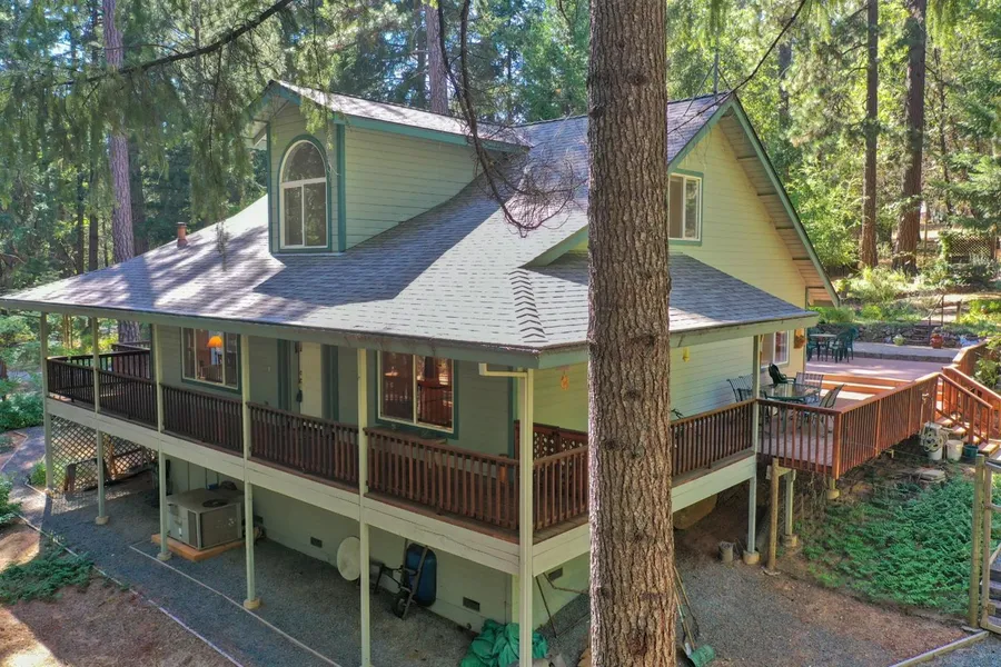 Own this wonderful retreat near Rollins Lake, delightfully cared for 3 bedroom and 2 1/2 bathrooms 2002 Sq foot home with over One Acre land that's zoned agricultural with a great location between Grass Valley and Colfax, all day-to-day living on main floor with primary bedroom en-suite, your guest area with two bedrooms and a full bathroom upstairs. Peaceful garden setting and Koi pond to enjoy the beautifully designed outdoor area with seating for all your parties. Updated kitchen with granite counters and a kitchen dining space, laundry space and half bath near kitchen and workshop area in the garage. Great storage throughout. Extra basement space below for your storage and the separate covered carport space for your boat. Live the Nevada County dream!