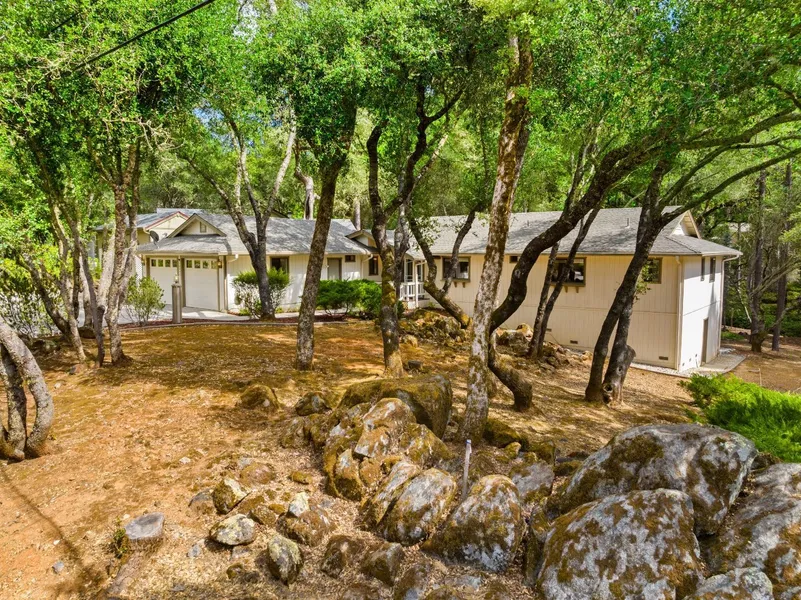 Meandering CREEK runs along the rear property of this one-story ranch style home, 3 Bedrooms w/closet organizers, 2.5 Baths. Hardwood Floors, Raised Ceiling, skylights, Propane Stove w/Brick Hearth, Ceiling Fans, Bonus Room. Large deck with Awning looking over this .48-acre lot, with Gazebo. RV Parking, Fenced in Pooch Yard. Several lighted finished and unfinished storage rooms. Truly a Very Special place. Just minutes to the Lake, Golf Course and Club House Dining. Fire Wise Community.