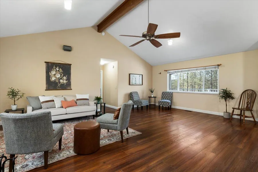 4 bedrooms in a Gorgeous, Natural setting. Nestled on the side of a picturesque hill in idyllic Grass Valley, this home offers a sophisticated and tasteful living experience with spacious cathedral ceilings in the main living area, and wood-inspired durable LVP floors throughout most. The kitchen features granite countertops and state-of-the-art appliances, including stainless steel fridge. The ample counter space is perfect for the chef in you to create elaborate meals, and the expansive great room is perfect for entertaining. Or, open the patio door for seamless indoor/outdoor living and enjoy your spacious back deck, great for barbecuing and outdoor dining. The generously sized Primary provides a comfortable and relaxing retreat with tree-top views and a stone-tiled spa-like shower. Plus, a fourth bedroom with its own half-bath! Conveniently located, just a short drive from town and H...