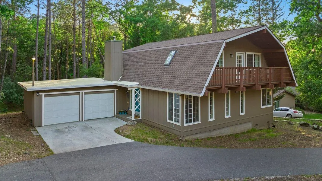 Prepare to be charmed by this gambrel style home on a greenbelt lot in the beautiful community of Lake Wildwood. Stunning exposed beams throughout the spacious living area. New tile floor in kitchen featuring double ovens and an abundance of counter space and cabinets. Large pantry. Family room/dining area right off the kitchen leading out to a large newer deck overlooking the fenced backyard and open space beyond. New wood stove insert. Sunken living room, formal dining room, half bath and laundry room round out the main level. All the bedrooms are upstairs. Guest bathroom with shower over tub. The master bedroom features a private deck. Whole house fan for energy efficiency. Two car garage. This is a well maintained home with recent improvements including new flooring throughout, a new roof in 2019, and the driveway was recently resurfaced. Lake Wildwood is an all ages gated community ...