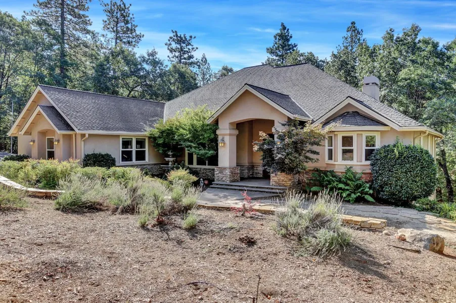 Superior quality throughout this lovely one story home nestled in the quiet part of Ridgeview Woodlands, which is located just four miles west of Grass Valley. Stucco siding and low maintenance landscaping greet you as you arrive up the meandering sidewalk into the formal covered entry way! Formal living room has a wall of glass looking out into the covered deck and the trees beyond. The formal dining room has space for large parties and the cherry wood cabinets in the large gourmet kitchen have been beautifully cared for! The romantic primary bedroom suite is located at one end of the house and has a lovely sitting area, fireplace and fantastic bathroom. The guest wing has the lovely bedrooms which also make for a great office and highspeed internet is connected! Covered back porch looks out into the trees and offers so much serenity and peace. The lower basement area has a great workshop and can be further developed! Manicured landscaping has been professionally brushed and maintained and feels like you own a park!