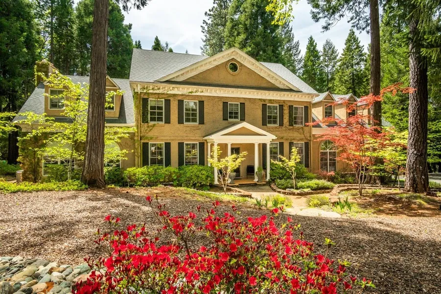 Welcome to this stately, impeccable Nevada City home on a level 1.5 acre in Nevada City that will capture your heart! Dramatic floor plan is ideal for large living and includes an incredible 1,300SF "Gathering room" for all your celebrations! Formal living room and dining rooms with cherry wood cabinets, beautiful trim & accent pieces throughout! Generous kitchen with loads of storage, sunny breakfast room and butlers' pantry! Cherry lined raised panel cabinets and tin ceilings in the luxurious cozy office! Huge primary bedroom with fantastic primary bathroom, two huge walk-in closets and great gym! The attention to detail is evident as you meander throughout this great home includes marble floors, brass, and cherry wood fixtures! Excellent CC&R's maintain this highly desirable neighborhood which enjoy deeded walking trails right out of this small development! Natural gas piped treated water and high-speed internet invite the whole family to enjoy working from home! Beautiful landscaping of rhododendrons, azalais and flowering trees will delight you Spring & Fall, and you will love the southing waterfall! Charming Porte-Cochere covered parking attached to the house, plus detached 5-car garage with a huge space above that could be developed to an ADU!