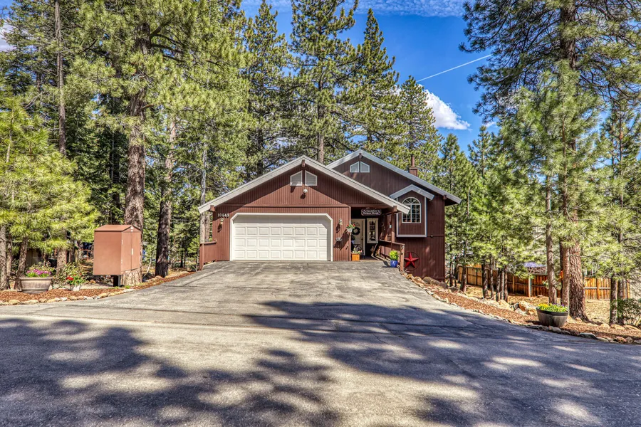 Located in one of Truckee's most sought-after neighborhoods, this nicely appointed three bedroom residence has a wonderful layout and a central location. The inviting, covered porch leads to an airlocked mudroom. Upon entry, you are greeted with a bright, sun-filled great room that receives excellent light from sunrise through sunset. The vaulted ceilings provide an open, airy feel and the beautiful chef's kitchen ensures that you will spend a lot of time on this level cooking, entertaining and relaxing by the fire. A large deck steps off of the great room offering al fresco dining amongst the pines. All three bedrooms are situated on the lower level. The primary suite offers a generously-sized bathroom and walk-in closet and features a hot tub just outside the sliding glass door. There is nice separation from the additional two bedrooms thanks to the hallway bathroom with a shower/tub combination. In addition to the two-car garage, adequate storage space is an understatement. There is almost the equivalent of the home's square footage in storage spread throughout the subfloor area. A portion of this has been converted into a home gym which could also make for an ideal media room or playroom. The newer shed with an insulated and finished interior with electricity is also a perfect space to work and play having been used as a year-round home office. Rounding out the Truckee/Tahoe lifestyle perfectly, there is additional off-street parking for an RV, boat and snowmobile trailer on the north side of the property.
