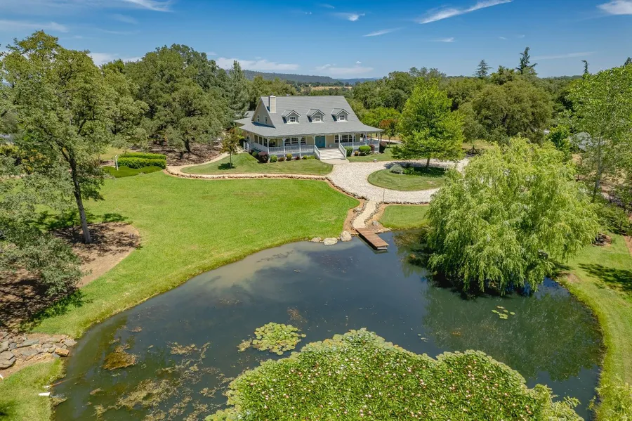 Home with Character! This Victorian Ranch home oasis nestled off Wolf Rd near Grass Valley. Lush park-like 2.43 acres, arrive home each day to this! Everything is spacious even a 8 car garage! 3 beds,3 baths. The spacious home includes large kitchen & private bar area for hosting legendary gatherings. Unwind or conquer your workday in the luxurious den/office wit plenty of room to convert an additional master bedrm downstairs. Large Granite Kitchen & Dining, and the real magic unfolds outdoors...Imagine boasting the ultimate car haven: a colossal 8-car attached garage with 6 spots + 2 tandem spaces (8), perfect for the car buff. A 2-story barn with a cozy wood stove, is ready to become your workshop, hobby haven, or additional vehicle sanctuary. There's even dedicated RV covered parking. Upon arrival of this private paradise discover a serene flowered pond with bass fish. Irrigation wate...