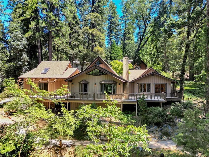 Lovely custom craftsman inspired home on one large landscaped acre with many mature plantings, walkways etc. This well loved home has High Open Beamed Wood Ceilings, Skylights, abundance of Anderson Windows and Sliders. Loads of natural Light throughout. Roof is 5 years new. All the rooms are spacious with an Open concept. Huge Living room with bay windows. All day to day living on the main floor. with exception of one bed and loft above. The office/den could easily be turned into another bedroom as the Septic is for 3 bedrooms, or use your imagination. This well crafted home was state of the art in its day. The Enormous Kitchen with massive counter space, 2 sinks and an Island opens to an adjacent eating area. There is a huge walk in pantry, laundry area and extra small refrigerator built in. This home is perfect for gatherings with easy flow entertaining into the Living Room and exteri...