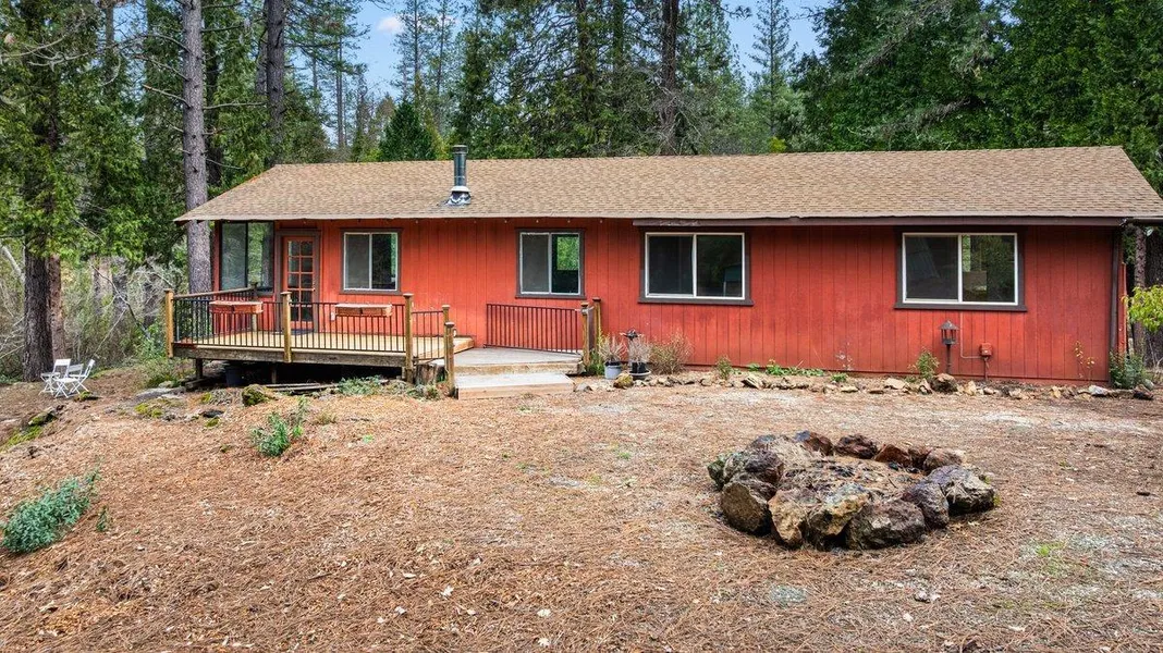 This home sits next to a year-round creek on a beautiful 4.2-acre parcel at the end of the road. A serene natural setting among the pines, bordering a 6.5-acre lake that's located on a wildlife sanctuary. Enjoy the sights and sounds of the water flowing by as you relax next to your in-ground pool. This peaceful oasis is a ten-minute drive to historic Grass Valley, with artisan shops, great dining and entertainment. This 2-bedroom 2 bath, 1620 sq.ft. home has a large open great room with views of the creek and pool. A cozy atmosphere with a wood burning stove. The primary suite has a walk-in closet and spacious bathroom with soaking tub and separate shower stall. Nice sized second bedroom. The guest bath is adjacent to an extra sink and vanity area with closet. A paved driveway wraps around the back of the home to a concrete slab for parking, ready to build a garage, or expand the home. P...