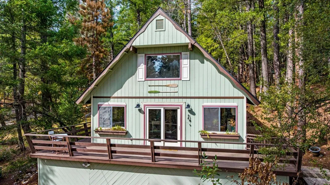 Gorgeous Chalet in the Cascade Shore Scotts Flat Lake community. I asked the seller what attracted her to the home, and what she told me, in her own authentic voice seemed of special significance since it came directly from her heart. She said, "The name of our street says it all, Mountain View! We are on the last row of houses in a year-round recreational lake community, and we face the beautiful mountains with views of forever. I love the fact that there is a walking trail easement behind the house that takes you through the woods to a small local market where you can pick up staples. The home is about five blocks from Scotts Flat Lake, far enough to be out of the traffic, but still close enough for a walk or bike ride on wide streets with gentle contours. I love the way the chalet style, Euro-inspired cabin is perched about 40 feet above the street. It provides privacy and affords a commanding view of the ingress and egress up the driveway. It allows for solitude and puts you the in the shade among beautiful towering pine trees. I love the half acre parcel. It feels so much bigger than a city lot because neighbors don't have fences." Plus: this home has a New roof and interior paint! It shines. Use address as url for the video.