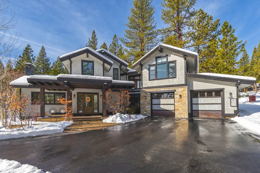Discover an extraordinary Nick Sonder-designed & RO Builders-constructed residence, where impeccable craftsmanship meets thoughtful design in the prestigious Gray's Crossing community of Truckee. This 4-bedroom, 4.5-bathroom home is a true masterpiece, set on a level lot that seamlessly blends modern luxury with the serene beauty of its snow-covered surroundings. Upon entering, you're greeted by an expansive great room, anchored by a striking floor-to-ceiling fireplace, creating the perfect space to relax after a day on the slopes. Large windows frame the picturesque winter landscape, bringing the beauty of the season indoors. Flowing effortlessly to the exquisitely landscaped backyard, the covered patio, lounge area, and cozy fire pit offer a magical setting for warming up after a day on the slopes or enjoying a peaceful snowfall under the stars. The interior showcases superior material...