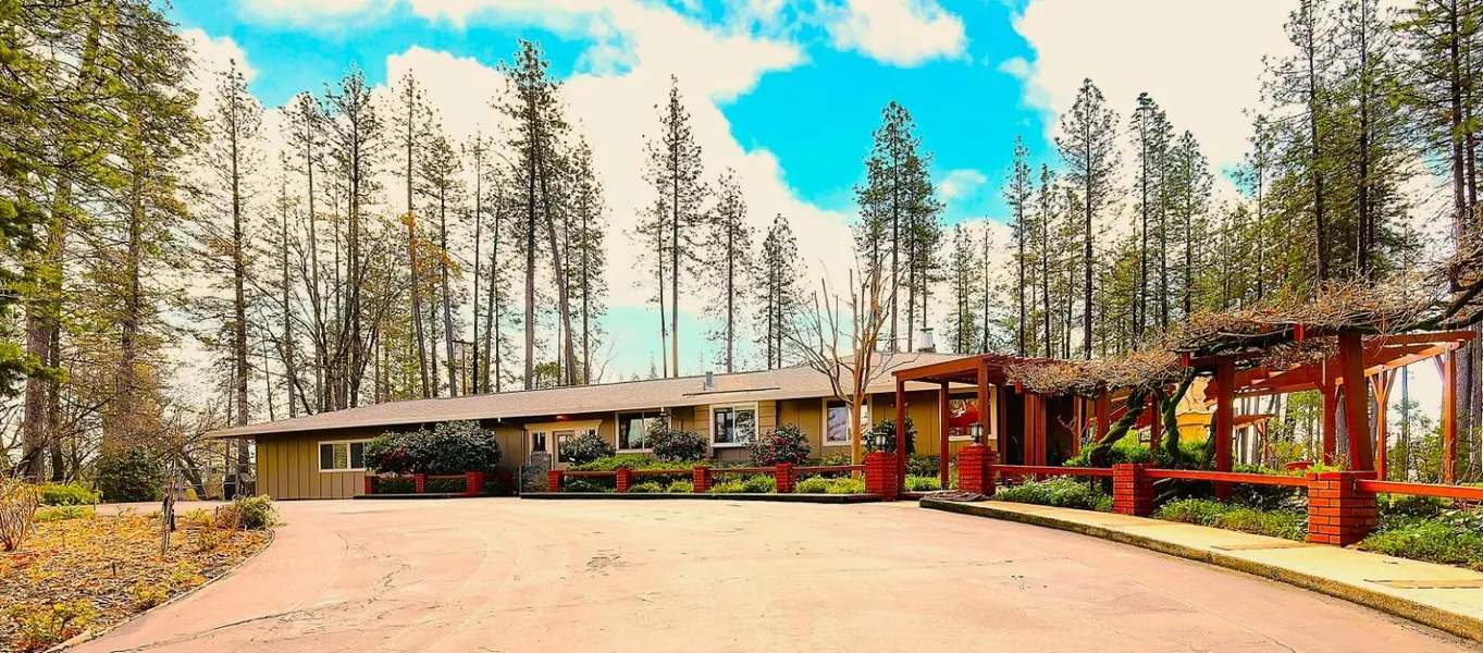 Five minutes from downtown Grass Valley you will find this wonderful, private retreat. Tucked back off the road on 2 adjoining parcels totalling 9.5 level acres, a graceful mid-century ranch style home sprawls amid formal gardens, inviting patios and a backyard orchard. Features of the house include a formal living room with wide doors opening out to an expansive covered patio offering a gas fire pit and stunning sunset views. A richly wood lined den with a large stone fireplace is the perfect place to be on a wintery night. A formal dining room and large kitchen with breakfast room provide plenty of space for family meals and entertaining. An office and the primary bedroom both open out onto a private enclosed patio garden. Additional living space includes an attached home office/apartment with a separate entrance, complete with an expansive great room, a bedroom, full bath and kitchen. Use as an extension of the main house or close off as a separate apartment. Owned solar and an auto-on generator provide back up power to the entire house. There are two detached garage/workshops with plenty of space for vehicles and storage. A well on each parcel, and NID irrigation provide plenty of water to the home and gardens. Come see for yourself how great this place is.