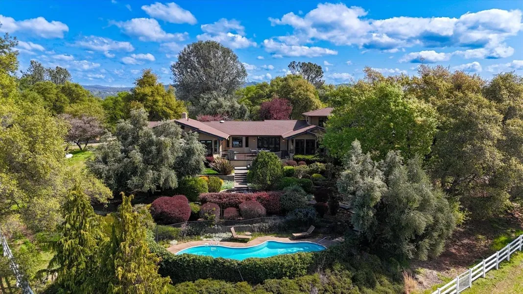 Equestrian Property: Home, Barn, Shop, Pool, Pastures, Irrigation water, domestic well, white vinyl fencing. 2-Geo-thermal HVAC systems, Generac Generator w/auto transfer. Solar system. Turn key w/ every amenity for luxury country living. 3900+/- SF, 4 bd 3 1/2 ba custom home. Gourmet kitchen featuring Decor, Miele, built-in Subzero & 2 refrigerator drawers, 2 freezer drawers, wine refrig, custom wood cabinets w/pull out shelves, Caesarstone counter tops, center island w/dual sinks & seating bar. Vaulted ceilings, floor to ceiling windows, step down dining room with French doors to the rear deck BBQ area. Tile, concrete & travertine floors. Private in-ground pool off the rear deck. Courtyard w/outdoor fireplace w/Jasmine covered arbor & waterfall. Lighted & landscaped to complete the ambiance. 8-stall custom built barn with breezeway, separate paddocks, tack/feed & wash areas. Auto waterers, Stable Comfort stall skins. Barn front has covered concrete patio/storage area. 5 pastures, 1 irrigated, 4" NID irrigation water. 100 x 200'+/- DG base arena. 1,000 sq. ft shop with power & water. Fenced & cross fenced w/ white vinyl fencing. Chicken house, custom dog Kennel with heat & a/c, refrigerated wine storage building. Fenced orchard & raised bed garden.