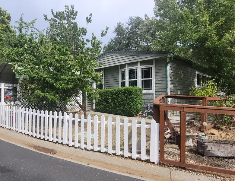 Huge PRICE REDCTION Quality AFFORDABLE home in an ALL AGE PARK. Excellent Value. Seller will credit Buyer in escrow towards a NEW ROOF of $15,000. This Charming and SPACIOUS well kept upgraded home has high ceilings, mostly all laminate flooring, Custom molding and trim throughout, Granite Tile counters, new floor in Kitchen. Spacious living room, Plus another Large great room adjacent to kitchen. Features 4 bedrooms and 2 full baths. Newly Painted Primary Bedroom and bath. Lovely Landscaping and Large covered deck. Private yard with Brick and stone patio, retaining walls and fencing. Raised Garden beds & shed. Good parking w/ Double sized metal carport & High Ceilings, perfect for your truck to fit under. Agents see private remarks.