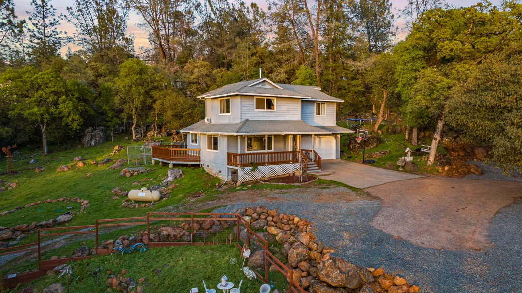 Wonderful hilltop home on 4 private acres with long range mountain views. This 1,561 sq ft, 3-bedroom, 2.5-bath floor plan is open and bright blending rustic charm with modern comforts. Step inside to find newer laminate flooring, newly painted kitchen cabinets with updated hardware, and a new HVAC system (2023) with whole-house fan and ceiling fans for year-round comfort. Fire safety and insurability are top-of-mind for many buyers and this home delivers peace of mind. With well-maintained defensible space, nearby fire hydrants, and confirmed access to CAL Fire insurance through Farmers (2025 quote: $2,398/year), this property is prepared and protected. The open-concept living area invites relaxed living, while the fenced-in property, with an automatic gate opener, offers privacy and security. Outdoors, you'll find everything you need for a hobby farm or homesteading dream: a garden, chicken coop, small barn, and storage shed. Just 10 mins to Alta Sierra golf course, Alta Sierra elementary and Magnolia School district, 20 minutes to Auburn, and 40 minutes to Roseville. The sellers are motivated and ready to make a deal, schedule your private tour today!