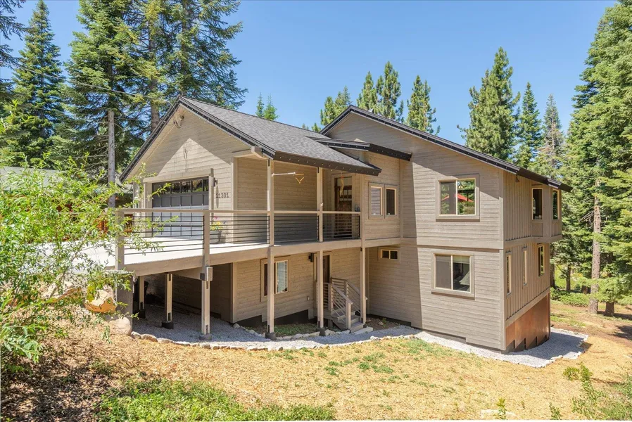 Welcome to this beautifully crafted mountain retreat, thoughtfully constructed by Robert Wise and set on a peaceful, private lot that backs to a vast greenbelt with miles of trails and open space, perfect for year-round outdoor adventure! Completed in 2016, this 4-bedroom, 3.5-bath home spans 3,343 square feet and offers a seamless blend of mountain modern comfort and practical design. Upstairs, the main level features a bright, open-concept great room with vaulted ceilings, warm wood finishes, and large windows that bring in natural light and forest views. The spacious living area is anchored by a striking stone fireplace and flows effortlessly into the dining area and well-appointed chef's kitchen. Just off the great room is a sunny back deck, ideal for entertaining or unwinding after a day on the trails. Also on this level, a convenient half bath and the luxurious primary suite, complete with heated bathroom floors and private deck access for a tranquil start to your mornings. Downstairs, the floorplan expands into a second living area with a custom fireplace, a large ensuite guest bedroom, two additional bedrooms one of which has direct access to the lower deck, and a shared Jack & Jill bathroom. A private office provides a quiet place to work or study, while a spacious recreation room with its own fireplace and bar area offers the perfect spot for game nights, movie marathons, or hosting guests. Additional highlights include a covered hot tub, heated floors in all full bathrooms, a reverse osmosis water filtration system, fire sprinkler system and a wired generator panel for peace of mind. A generous garage and flat parking area offers ample space for all your Tahoe toys and gear. Tucked into a tranquil setting on lower Skislope providing easy access to Truckee and all of Tahoe Donner's top-tier amenities, this home offers the best of mountain living in every season!