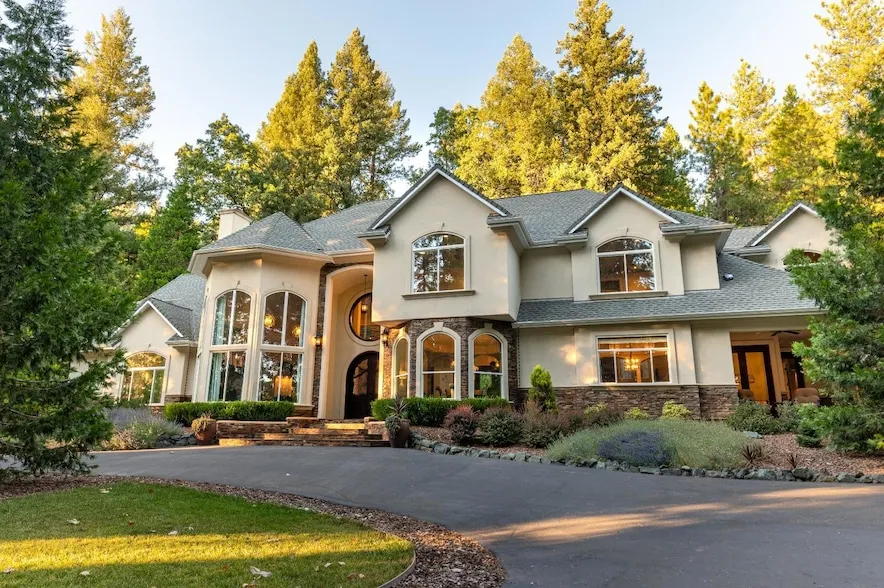 Discover this extraordinary Sierra Foothill estate just minutes from Nevada City, offering luxury, privacy, and versatility on 4.84 acres. The main home spans approx. 6,332 sqft and features soaring ceilings, stunning architectural windows, and designer finishes throughout. The gourmet kitchen boasts a custom walnut island, high-end appliances, and ample space for entertaining. The main-level primary suite is a private retreat with a spa-style bath, sitting area, dual-sided fireplace, and access to the outdoors. Upstairs includes a loft, media room, multiple bedrooms, and a second kitchenette, ideal for multi-gen living or guests. A detached 1,197 sqft guest home includes 3 bedrooms, 2 baths, granite counters, and a full outdoor kitchen with bar seating and custom decking. The property also features a barn, bocce ball court, two RV hook-ups with electric and water, and easy-care landscap...