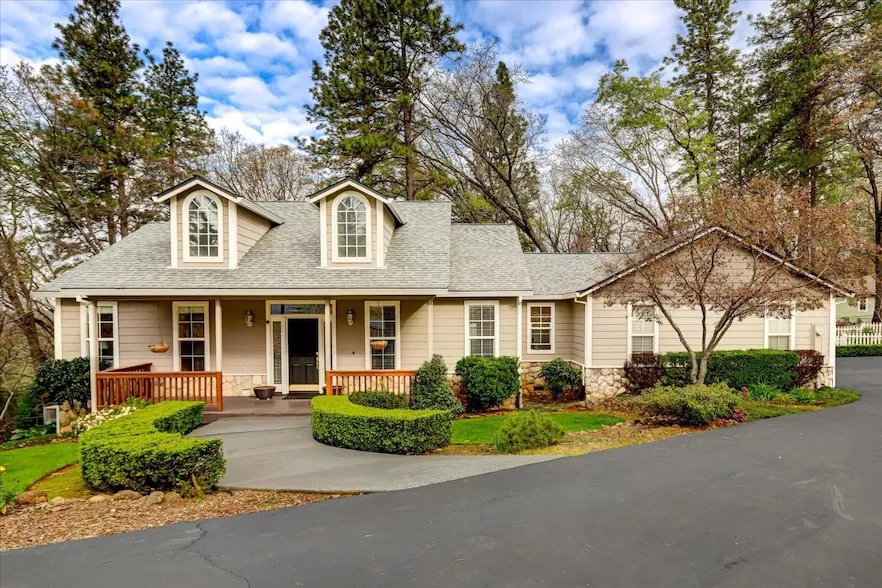 Delightful and charming One story Farmhouse nestled on a sweet cul de sac in the highly desirable La Barr Pines Subdivision, located minutes below the City limits of Grass Valley. Covered porch invites you into the sunny open floor plan with vaulted ceilings and surrounding windows which accent the great room! Lovely cook's kitchen with center island, walk in pantry and stainless appliances. The romantic master suite is separate from the guest bedrooms and the beautiful back deck is partially covered and offers filtered sunset views while enjoying your favorite beverage and a good book! Oversized two car garage and loads of parking plus a sweet fenced yard for the pups or Littles! The location is convenient and ideal for a commuter with easy access to Hwy 49! Piped treated water, great internet and affordable fire insurance! New floors completes the impeccable look of this great home! Large unfinished basement offers loads of possibilities! You will be in love the minute you walk in! Full photo shoot on 2/13/26.