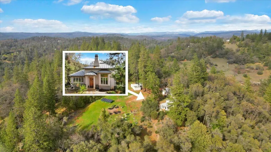 Designer's own home with lots of fun artsy detail. On the market for the first time, this sweet home has a fairy tale feel and lives larger than the sqft. Originally designed to be the guest house, the property is all set up for a second home, with a 4-bedroom septic, water holding tanks, 5.34 KW solar system and 440-amp electrical service - on 40 acres you could create a family compound with multiple view building sites to choose from. There are paths to hike, a charming gravel patio area with tree rounds for stepping stones, a picnic area and a large garden area. 2x6 construction, 2 tone stucco and standing seam metal roof make this home fire resilient, the upgraded plentiful, dual pane windows and huge skylight in the apex bring light and nature into this open floorplan. The 2-car garage was intended up to use as an office on one half. The barn consists of two 12 x 12 stalls and a 10 x 12 tack/feed room. Plans come with the property if desired. just a few miles to schools, shopping, services and dining.