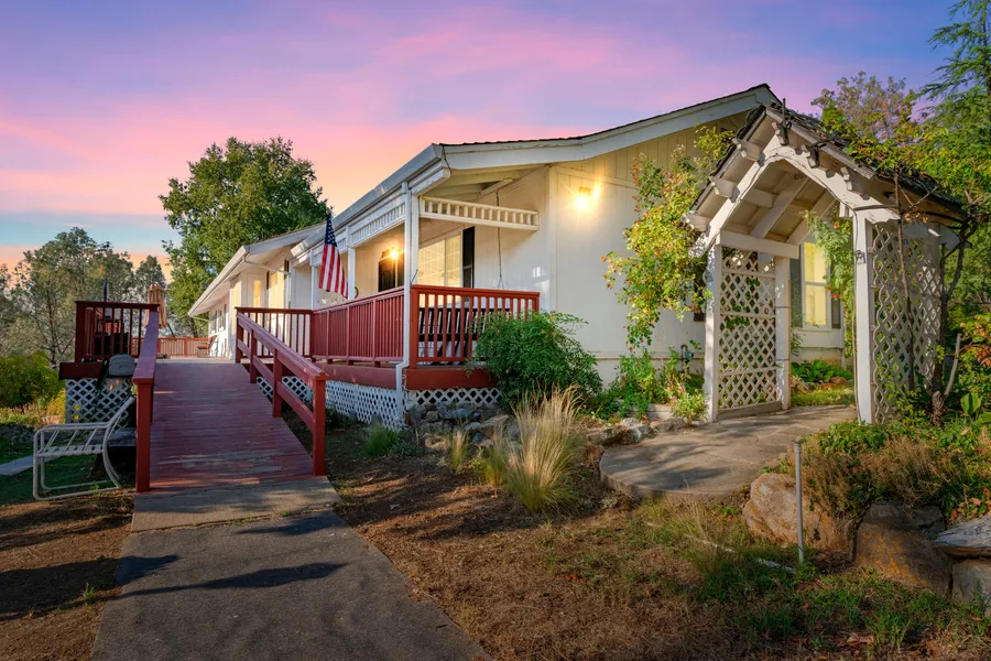 Looking for a secret garden to call your own? This wonderful home features many foundational plantings, multiple garden spaces and water features. Grow boxes and fruit trees plus a 4 bedroom, 3 bath home including two primary suites. Hard wood and laminate flooring, a cozy woodstove, vaulted ceilings, a chef's kitchen, spacious closets. A chicken coop, potting sheds, ton's of storage, a private rear deck and stone patio and the front deck has incredible views you will not tire of. Perimeter fencing plus a separate pasture for your critters all just minutes to either Penn Valley Proper or downtown Grass Valley. Well and septic tests on file - Well tested at 16 gpm! Stop dreaming and start living your foothill homeownership dream on 5 acres in a high demand, rural neighborhood.