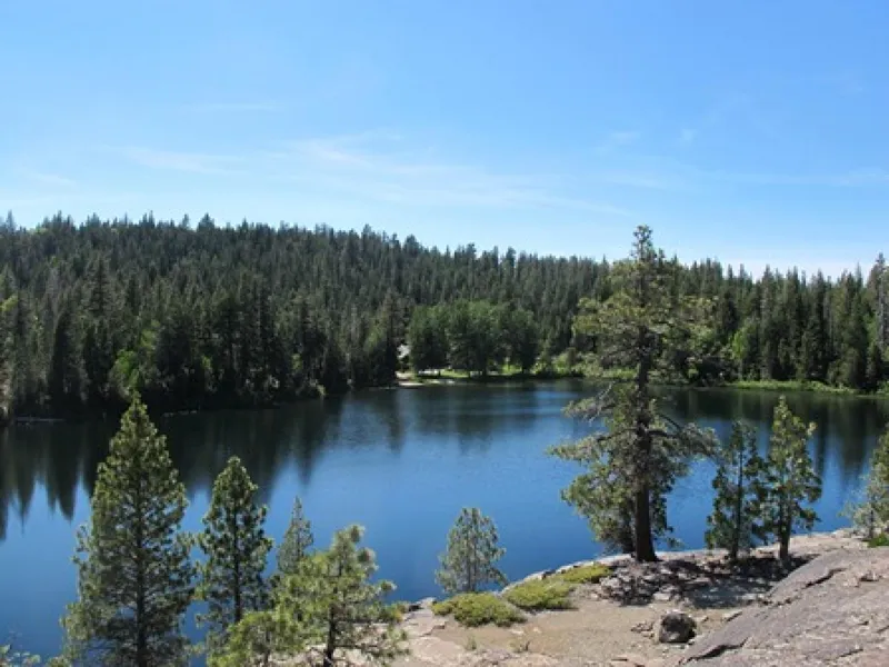 The lake is deep, crystal clear, and perfect for swimming and fishing. Jump off the dock or the granite rocks, or float near the beach and take in the wilderness-like setting. Surrounding the lake is a combination of granite escarpments, conifer forests, a mountain meadow, a sandy beach and a large wooden dock.