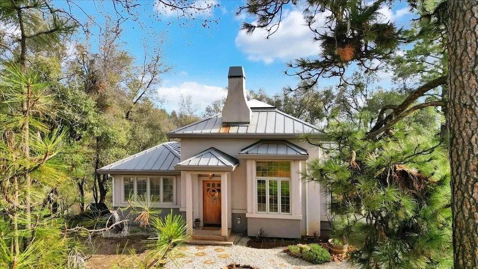 Giddy'up to blaze the trails on this 40 beautiful acres with a cottage full of artistic details. This charming residence exudes a fairy tale feel and feels larger than its square footage suggests. The cottage was originally intended as a guest house & the property is ready for expansion with a 4-bedroom septic system, water holding tanks, a 5.34 KW solar system, & 440-amp electrical service. The 40 acres offer potential for a family compound with at least 4 sites with views! Explore hiking paths, relax on the gravel patio with tree round stepping stones, enjoy the picnic area, or tend to the large garden. Built with 2x6 construction, two-tone stucco, and a standing seam metal roof, this home is fire-resilient. The upgraded dual-pane windows & abundant natural light fill this open floor plan. The 2-car garage is partially designed for office use. The barn includes two 12 x 12 stalls & a...