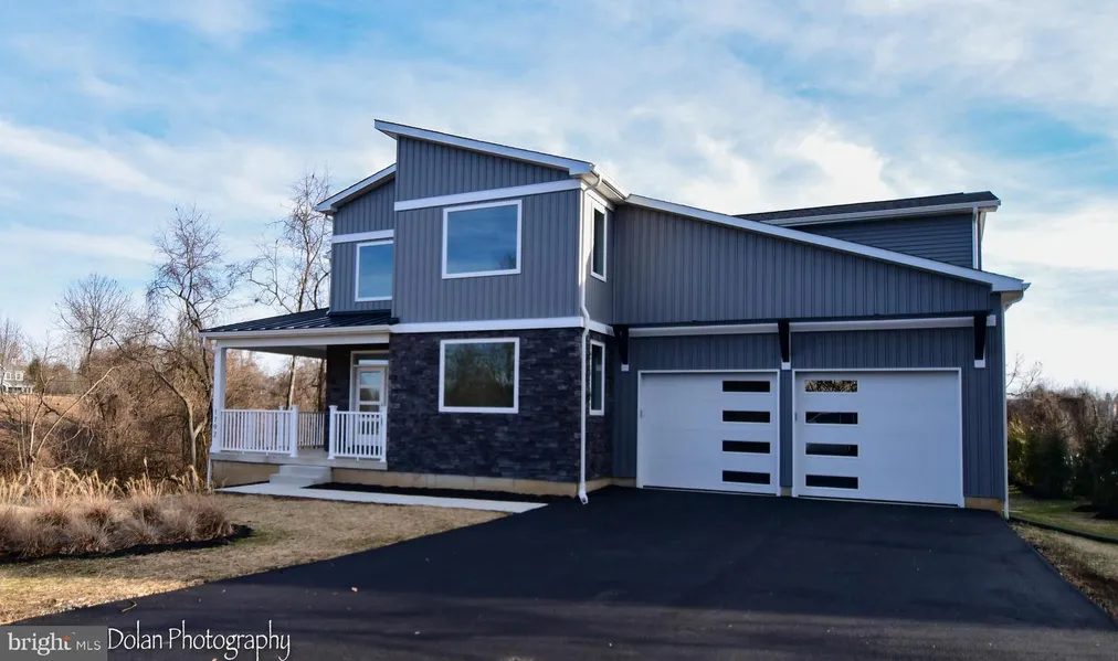 Over 4,000 square feet of unique contemporary new construction. This 5-bedroom, 3 ~ bathroom home is located on a 1.4 acre wooded lot. The contemporary feel of this home will be obvious when you arrive. The large picture windows, glass entryway, striking roof lines, unique glass garage doors with modern overhang contribute to the impressive appearance of this home. The contemporary floor plan is obvious as you enter the home in a 2-story foyer and view the open stairways. The office off of the foyer features a large picture window and space to add built-ins, if desired. A separate dining room also features large windows and serving area. The kitchen includes modern cabinets, countertops, island, pantry and vaulted breakfast area with many large windows. Kitchen appliances include built-in wall oven/microwave, separate gas range with hood, dishwasher, disposal and refrigerator. The 2-story great room adjacent to the kitchen includes a gas fireplace and accesses an outdoor living area with covered rear deck with a wooded exterior view. The master suite on the main floor includes large windows, vaulted ceiling and large walk in closet. The master bathroom includes a large ceramic tiled shower, soaking tub and private water closet. The laundry room is also located on the main floor. The entire 1st floor includes hardwood and ceramic tile flooring. The open stairway leading to the basement continues the contemporary look which allows for the buyer to finish the basement, if desired. The basement includes a walkout area to the rear with large windows and slider to an area that can be finished for additional outdoor living space. The basement includes 9~ tall walls. At the top of the stairs on the 2nd floor, the view is impressive into the 2-story great room and exterior rear woods. The 2nd floor includes 4 bedrooms with vaulted ceilings in 2 of the bedrooms. One of the bedrooms includes a private study. A private game room is also included on the 2nd floor which is a great place to watch movies and/or play video games. All bedrooms include large closets and large picture windows. 2 full ceramic tiled bathrooms are located on the 2nd floor to service the 4 bedrooms. Other features of this contemporary home include recessed lighting throughout, tankless water heater, 4 zone HVAC system and contemporary flooring and trim work. No other new construction homes are being built in the area that can provide this type of living environment. The house is fully complete and ready to move into.