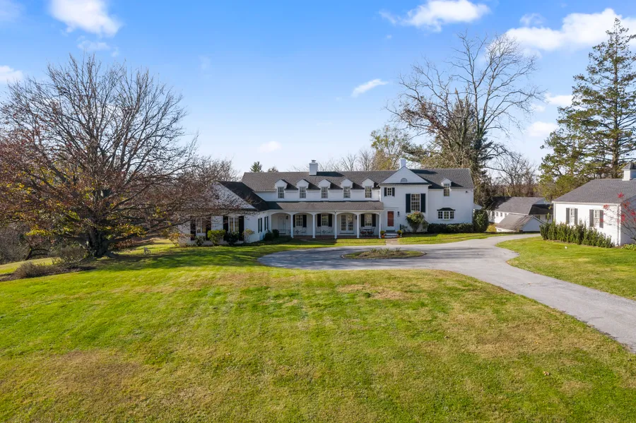 Centrally located in Greenville Delaware directly across from the Rolling Hills of Winterthur Museum on Kennett Pike, a National Scenic Byway. Perched on a hill, enter this Historical private 4+ acre estate passing through the brick pillars leading to the meandering driveway up to a beautiful bright 4 BR, 4.2BA manor home with southern exposure. Two Primary Owners Suites, one the Main Level and the Second Level Upstairs. A truly unique property also includes a pristine detached 1700 SF Home Office or detached Entertainment Space complete with exposed beams and bathroom with shower. Another separate 2 Car Detached Garage added to give the property endless possibilities. Enter the Home into the graceful 2 Story Foyer leading to a large formal Dining Room. Enjoy the comfort of the center fireplace, period moldings, hardwood floors and the open scenery through windows and French doors accessing the covered brick patio or porch, extending your Entertainment Areas. Pass through the arched deep doorways that flank the fireplace to the large Living Room with a barrel vault ceiling, built-ins, and finish off with a beautiful bow window. To the right entry of the house sits a Kitchen with a peninsula, pantry, granite countertops, and tiled floor that opens to the warm and welcoming Family Room with an arched bookcase, angled windows overlooking another patio and the property. An additional Entertaining Kitchen with seating space is nearby. The large first floor Primary Bedroom has a Sitting Room and a private Bathroom with marble floors and countertops. The upper level consists of an additional Primary Bedroom Suite with a brick fireplace, a large Bathroom housing a jet tub, oversized marble shower and vanity, and an additional Bathroom all with marble floors. Two additional Bedrooms with a Jack and Jill bathroom complete this upper level. The lower level of this home has an additional Family Room finished with a fireplace, tiled floors and exposed beams that has a walkout access to the back patio. In todays changing climate this house accentuates private living, flexibility, alternative style, while close to all amenities and shopping.
