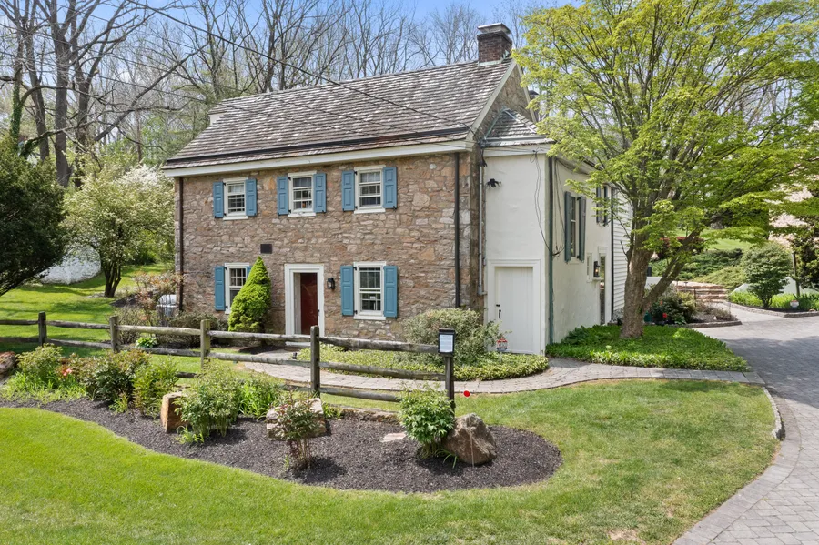 A Gracious Stone Home minutes from University of Delaware consists of the main house, detached garage with an income producing 1 bedroom cottage apartment or an excellent home office/studio, pool with pool shed and an expansive yard. Enter the property onto an attractive paver style wide open parking area between the two stone structures. Approach the main house and enter through the wide 8 panel solid wood front door with period hardware into the center foyer with captivating details. The foyer has hand punched detailed moldings, exposed stone wall from the original structure, and an attractive flagstone floor. The bright and open family room has a two sided fireplace, a large bank of windows and a continuation of the flagstone flooring. The elegant dining room features random width hardwood flooring, exposed beam and stone, chair rails and center fireplace leading to the modern eat-in ...