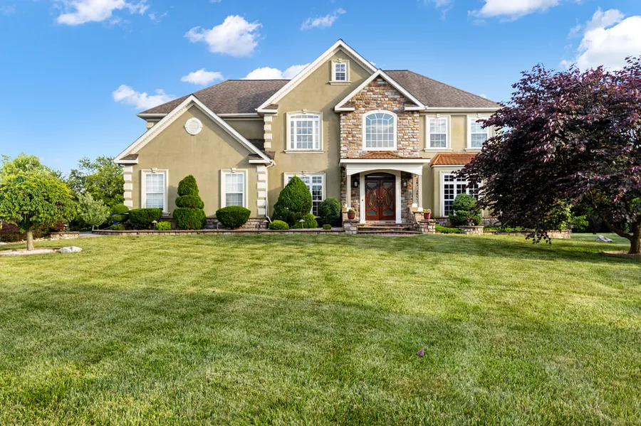 Welcome to 148 Bakerfield Drive, a stunning four bedroom, three and a half bathroom residence spanning 4,325 square feet. Nestled on a level one acre lot within the prestigious Appoquinimink School District, this home is perfect for anyone seeking award-winning schools, affordable living, and a peaceful environment. Upon arriving via the newly resurfaced, extra wide driveway, you'll be captivated by the meticulously upgraded exterior, featuring elegant hardscaping, tasteful lighting, and lush landscaping. The double mahogany front doors invite you into the Stratford model's grand interior. Marble tiled floors guide you to a cozy sitting room adorned with a Victorian tin ceiling on the right and a formal dining area with a tray ceiling on the left. A grand Brazilian cherry and wrought iron staircase serve as a stunning focal point, leading you to the expansive great room. Here, 20 foot ceilings and dual fireplaces create a warm and inviting atmosphere, perfect for various activities. Adjacent to the great room, the upgraded kitchen boasts stainless steel appliances, granite countertops, a Mediterranean-inspired tile backsplash, and a custom tiered island with a wet bar. On the main level, you'll find an additional bedroom or professional office, offering versatility. Ascend the Brazilian cherry staircase to discover four spacious bedrooms. Two Jack and Jill bedrooms feature ample closet space and abundant natural light. The third bedroom, conveniently located near the primary suite, can easily serve as a nursery. The primary suite is a luxurious retreat with dual walk-in closets and hardwood floors leading to a fully upgraded bathroom. This spa-like space includes dual vessel sinks, circular mirrors, a Jacuzzi soaking tub, and a floor to ceiling glass and marble shower with multiple showerheads. The fully finished basement is an entertainment haven, complete with a full wet bar, gaming area, third full bathroom, and a gym that is perfect for holiday gatherings or hosting guests. The large, level rear yard is ideal for outdoor activities like ball games or BBQs, with the potential for further customization through additional hardscaping or a deck. Conveniently located just minutes from major transportation routes to Wilmington, Philadelphia, and Route 301, this property offers an exceptional blend of luxury, comfort, and convenience.