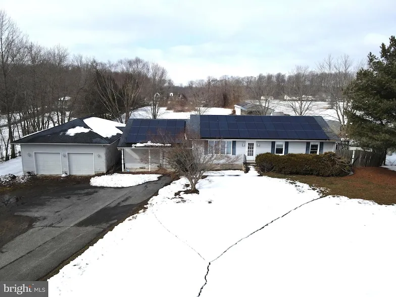 Bring your vision! Priced to reflect the current condition and allow opportunity for customization of this 4 bedroom, 3 full bath expanded ranch on 1.89 acre lot with sunroom, oversized 2 car garage plus shed and large multifunctional outbuilding/garage! Quiet, country setting yet convenient to Route 1 and within the award-winning Appoquinimink School District. Hardwood flooring runs through the formal living room plus 3 bedrooms. Primary suite with private bath. Large eat in kitchen with glass doors leading to 4 season sunroom overlooking the deck and property. A spacious family room with a pellet stove leads to the left wing of the home, which has separate heating and cooling, plus a 4th bedroom and full bath that could be used as a studio, home business or in-law suite. Enjoy reduced utility bills with solar! Solar panels to be paid off by seller at closing. Hurry to schedule your private tour today!